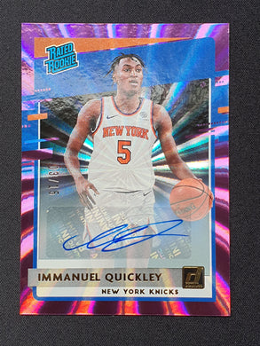 2020-21 Panini Donruss Rated Rookie Immanuel Quickley Purple Laser Auto /15